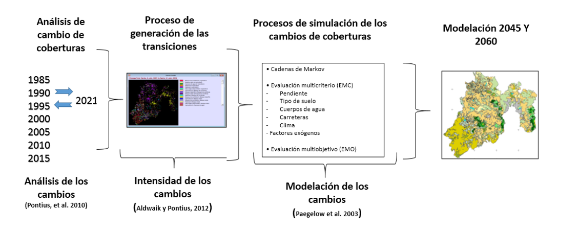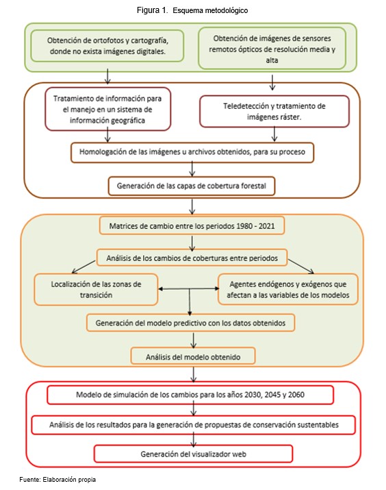 El siguiente proceso fue la asignación de un sistema de clasificación, ya sea por tipo de vegetación y uso de suelo o por clasificación arbórea, esto ajusto a la calidad los insumos obtenidos. Seguido de esto es el procesamiento de imágenes satelitales digitales, fotografías aéreas y ortofotos físicas, las cuales se trataron dependiendo el tipo insumo, para las imágenes satelitales se realizó un método de clasificación supervisada para cada tiempo, se corroboro y corrigió manualmente las clasificaciones para su mayor exactitud. En el caso de las fotografías aéreas y ortofotos físicas, se realizó un escaneado o digitalizado, para después transformarlas a un formato ráster manejable y así poder hacer comparables con las imágenes satelitales a trabajar.
